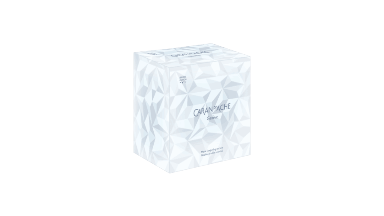 Confezione nella scatola decorata con motivi geometrici nei toni del blu ghiaccio e del bianco, che richiamano l’effetto sfaccettato della brina invernale