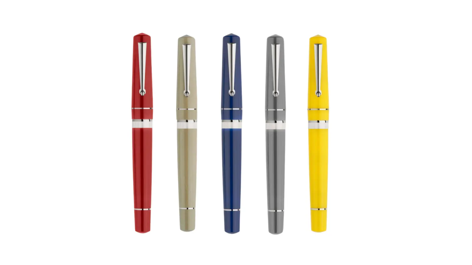 Penna stilografica interamente in resina italiana disponibile nel colore: blu, grigio, rosso e sabbia. Clip e finiture placcate placcate palladio. Pennino Medio in acciaio inossidabile. Caricamento a stantuffo presente la finestrella per verificare la quantità di inchiostro rimanente all’interno.