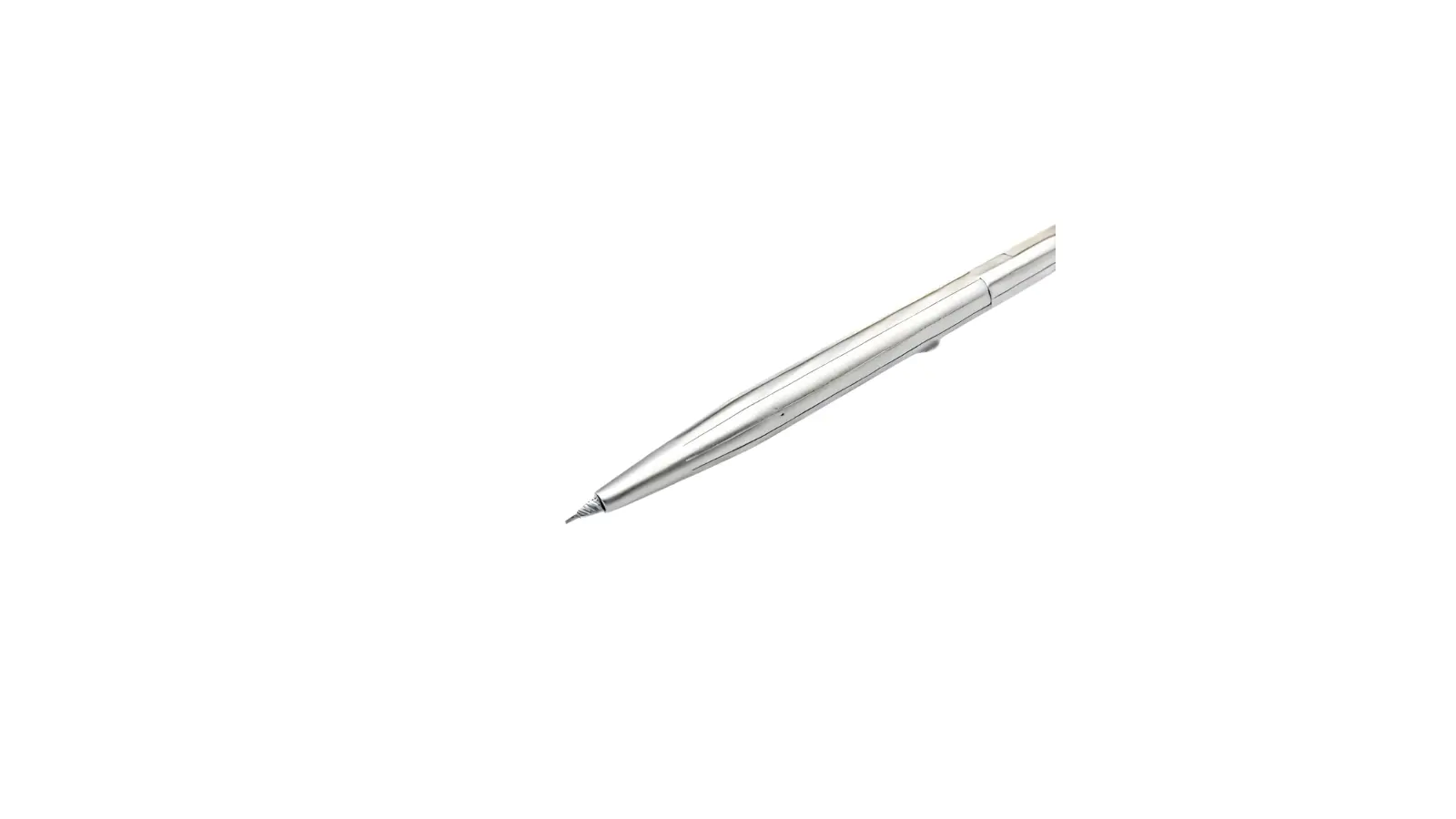 Matita interamente su base in rame e placcatura in palladio sfumato con motivo scanalato. Meccanismo a rotazione per permettere la fuoriuscita della mina da 0,7 mm.
