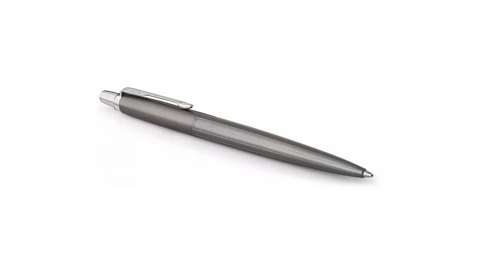 -Penna a sfera Jotter con corpo in acciaio inossidabile gessato verniciato con incisione al laser. Clip e finiture lucide. Meccanismo a pulsante.