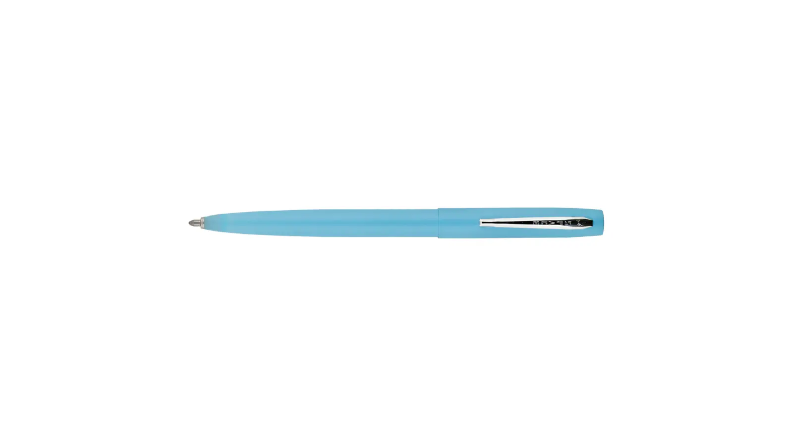 Penna a Sfera Cap-O-Matic in metallo azzurro. Clip in metallo. Meccanismo a pulsante. Refill pressurizzato.