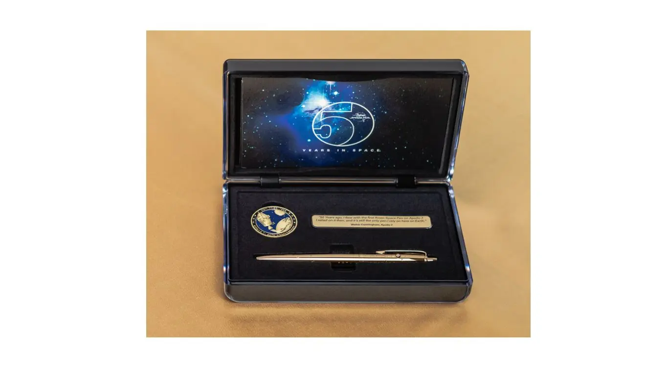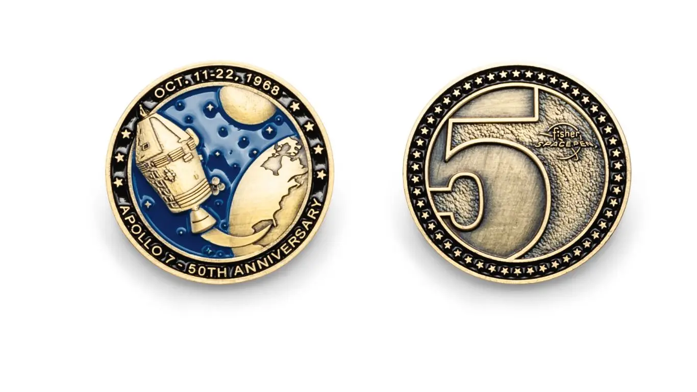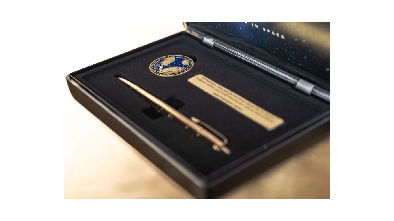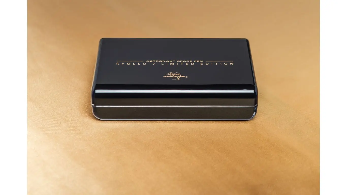 Fisher Space Pen celebra con orgoglio il suo cinquantesimo anniversario da quando le nostre penne sono utilizzate per la prima volta a bordo del volo inaugurale dell’Apollo 7. Festeggia oggi stesso questo momento cruciale della storia con la tua penna spaziale Fisher Space Pen Penna a Sfera da Collezione AG7-LE Gold Titanium in edizione limitata.