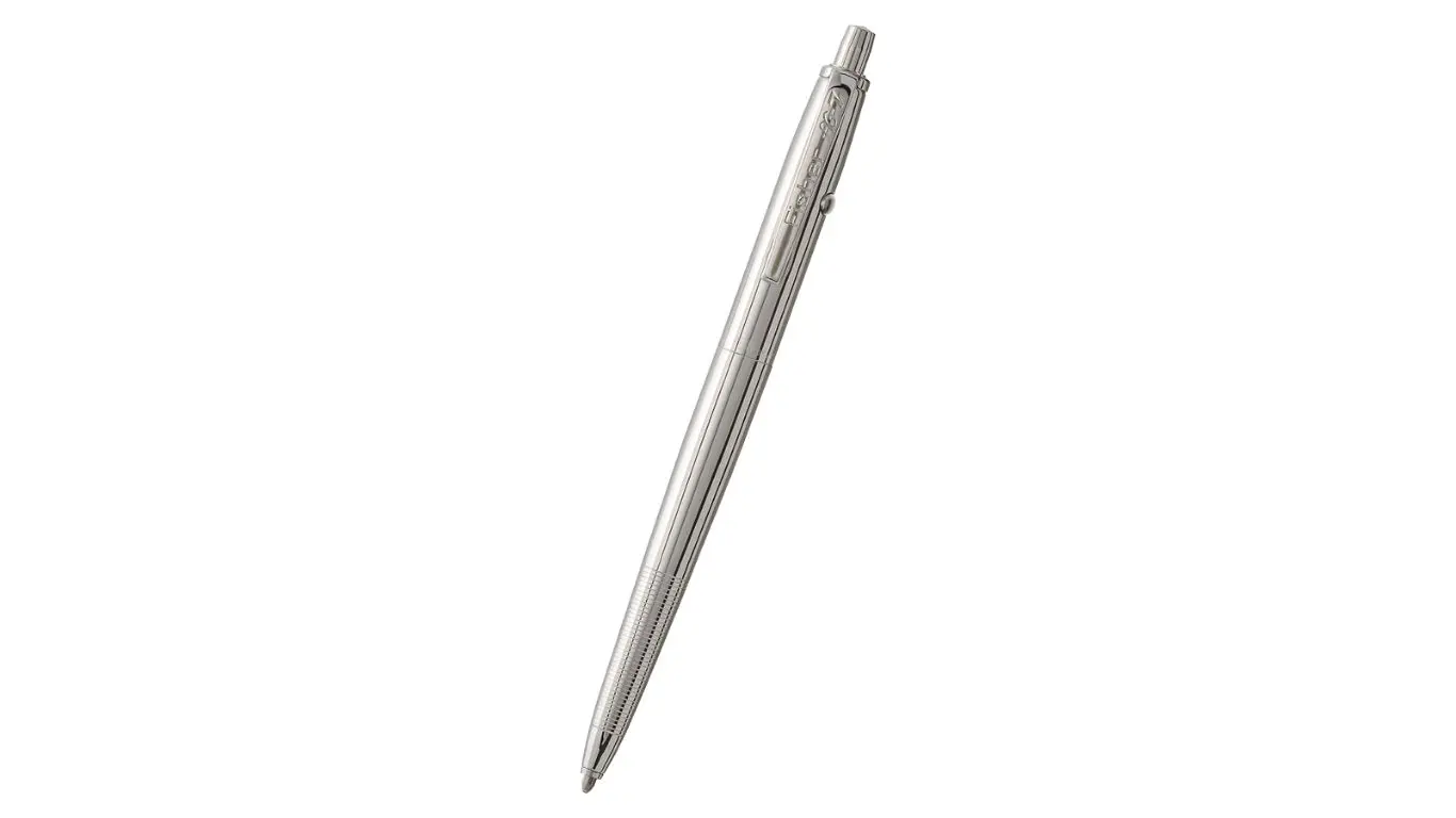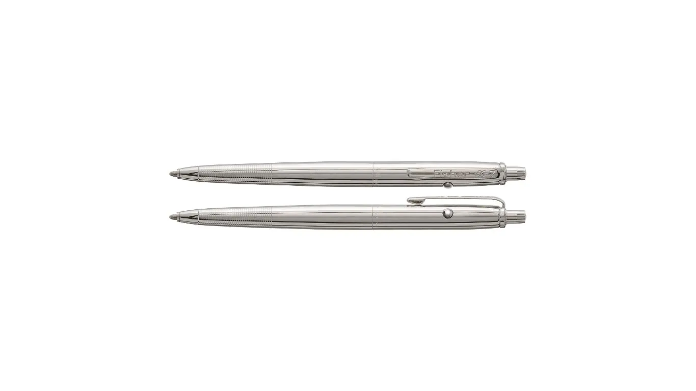 Penna a Sfera “Original Astronaut Space Pen” interamente in metallo lucido. Meccanismo a clic che estende la punta tramite il pulsante sulla parte superiore ed un pulsante di rilascio sul lato per ritrarla. Refil pressurizzato.