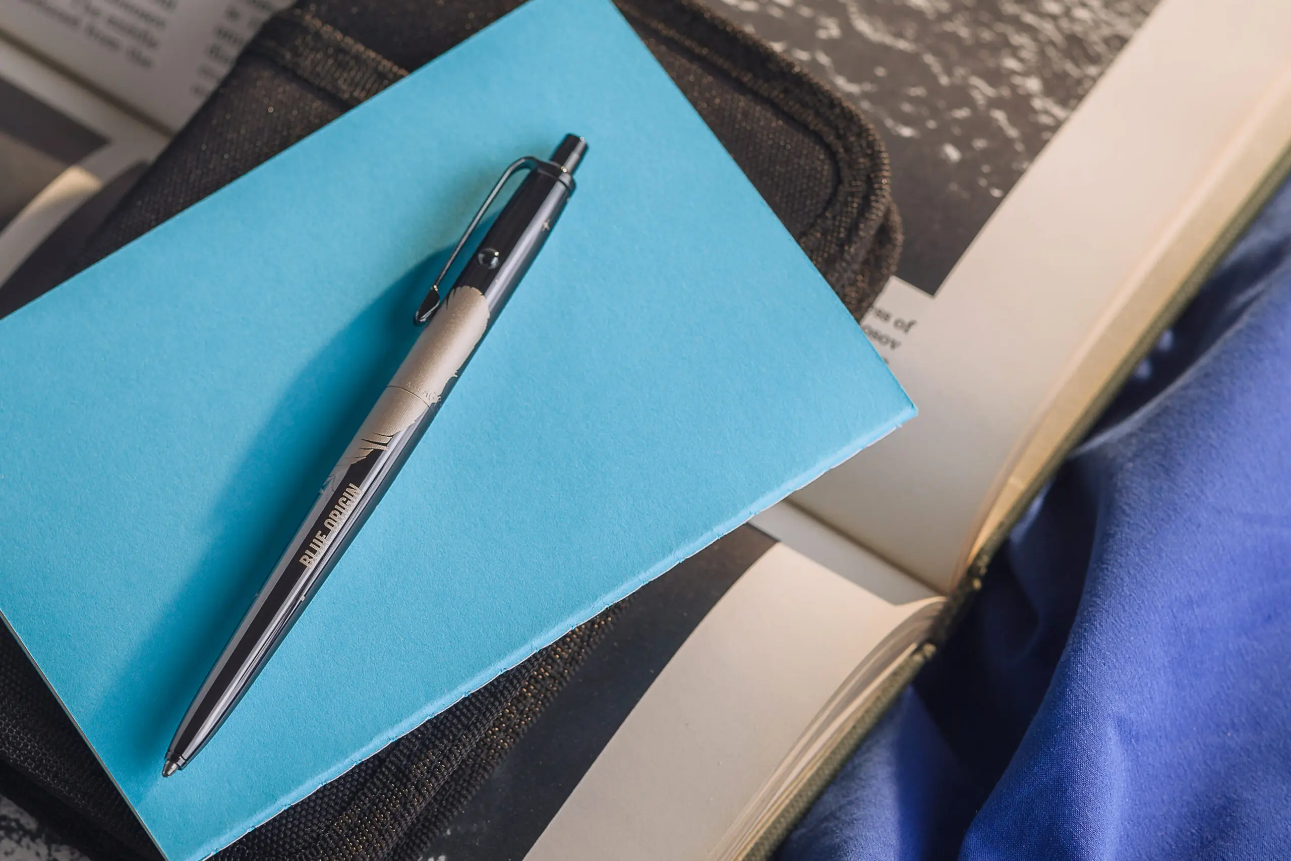 Penna a Sfera Bullet “Special Edition Blue Origin” con cappuccio interamente in metallo lucido colore blu con piuma in argento. Il simbolo della piuma rappresenta la perfezione dell’hardware di volo. Refill pressurizzato.