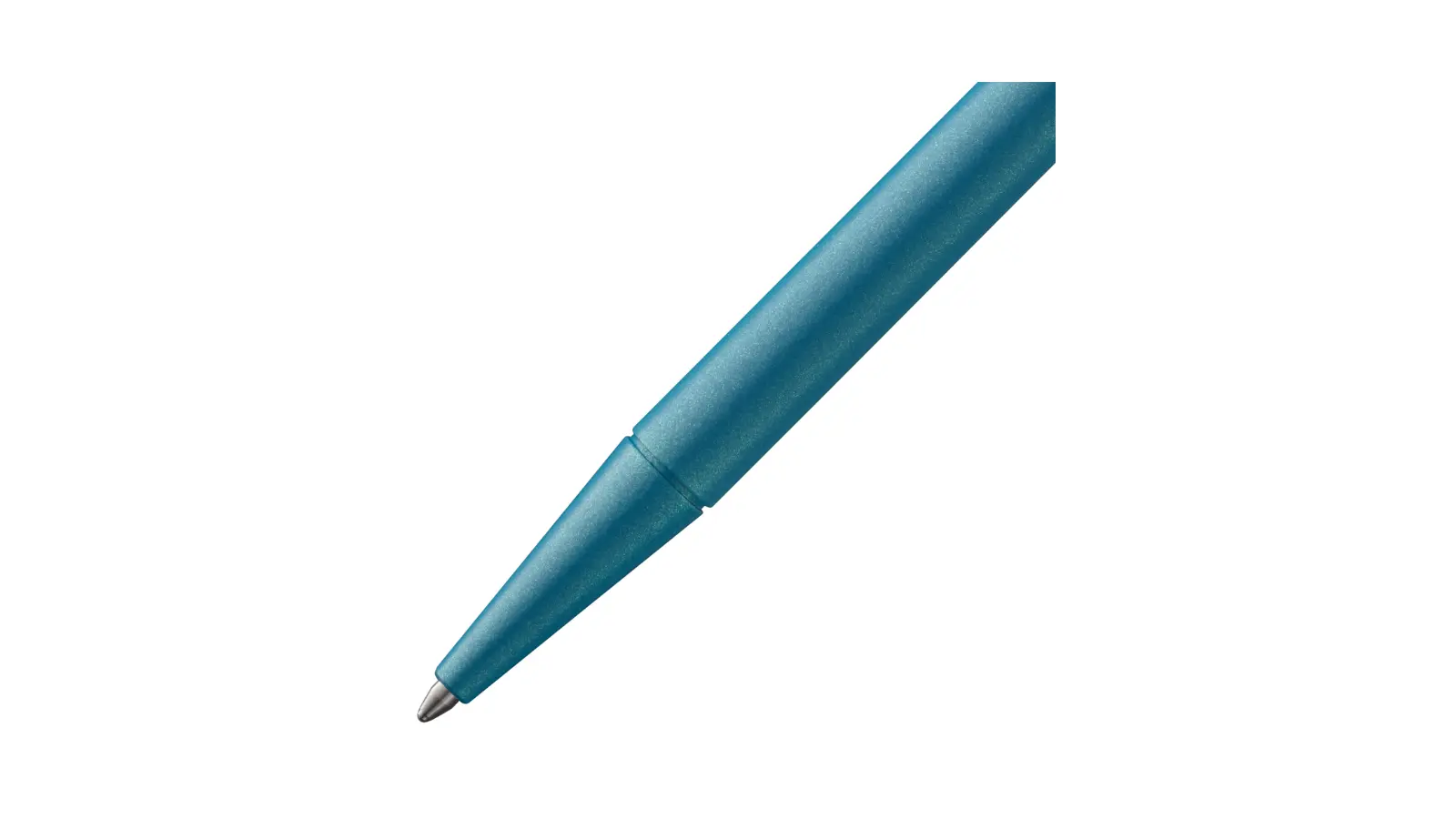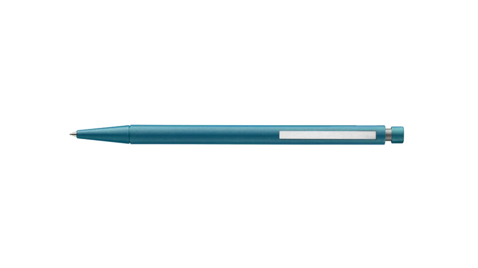 Penna a sfera in metallo laccato aquamarine con corpo sottile. Clip e finiture in metallo cromato. Meccanismo a pulsante.