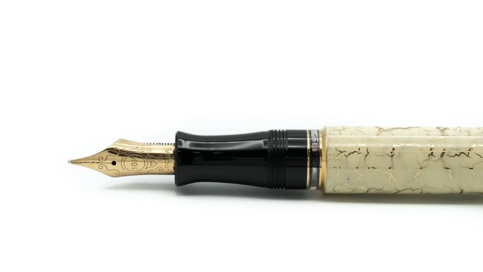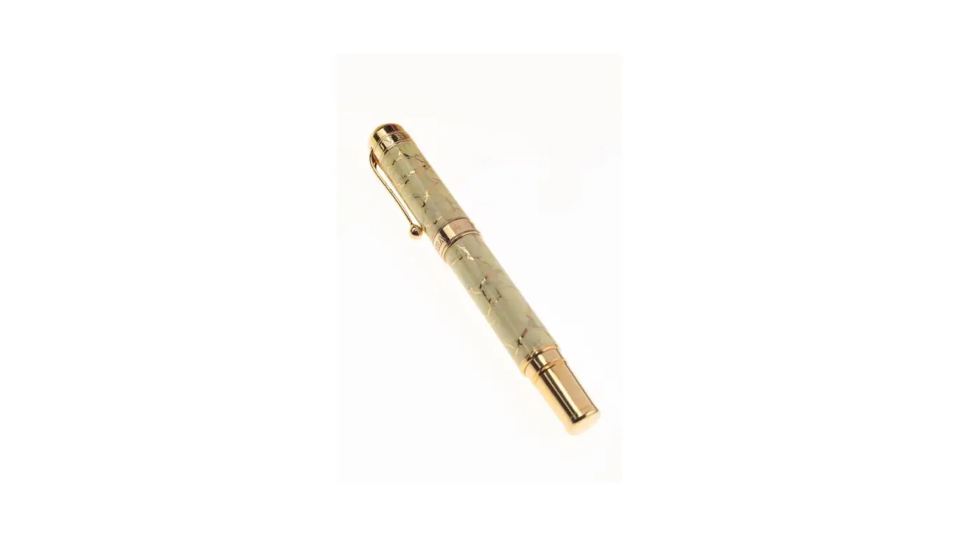 Penna stilografica in edizione limitata a 2.000 unità numerate con rivestimento in lacca avorio e venature in oro. Sul fermaglio è incisa la Basilica di S. Pietro e sulla testina dorata l’ immagine del Vaticano. Pennino Medio in oro 18kt. Caricamento a stantuffo.