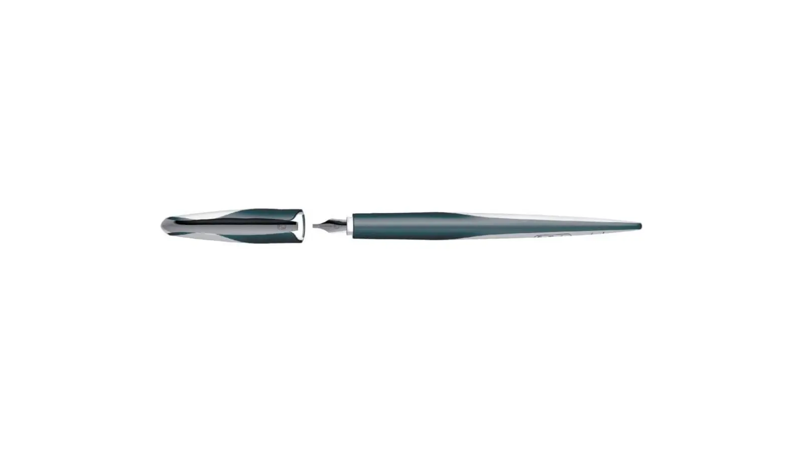 Penna stilografica con fusto a sezione triangolare affusolato nel colore dark shale black. Tre pennini in acciaio inossidabile di diverse larghezze (0,9 – 1,4 – 1,9mm). Caricamento solo a cartuccia. Tre cartucce presenti nella confezione.