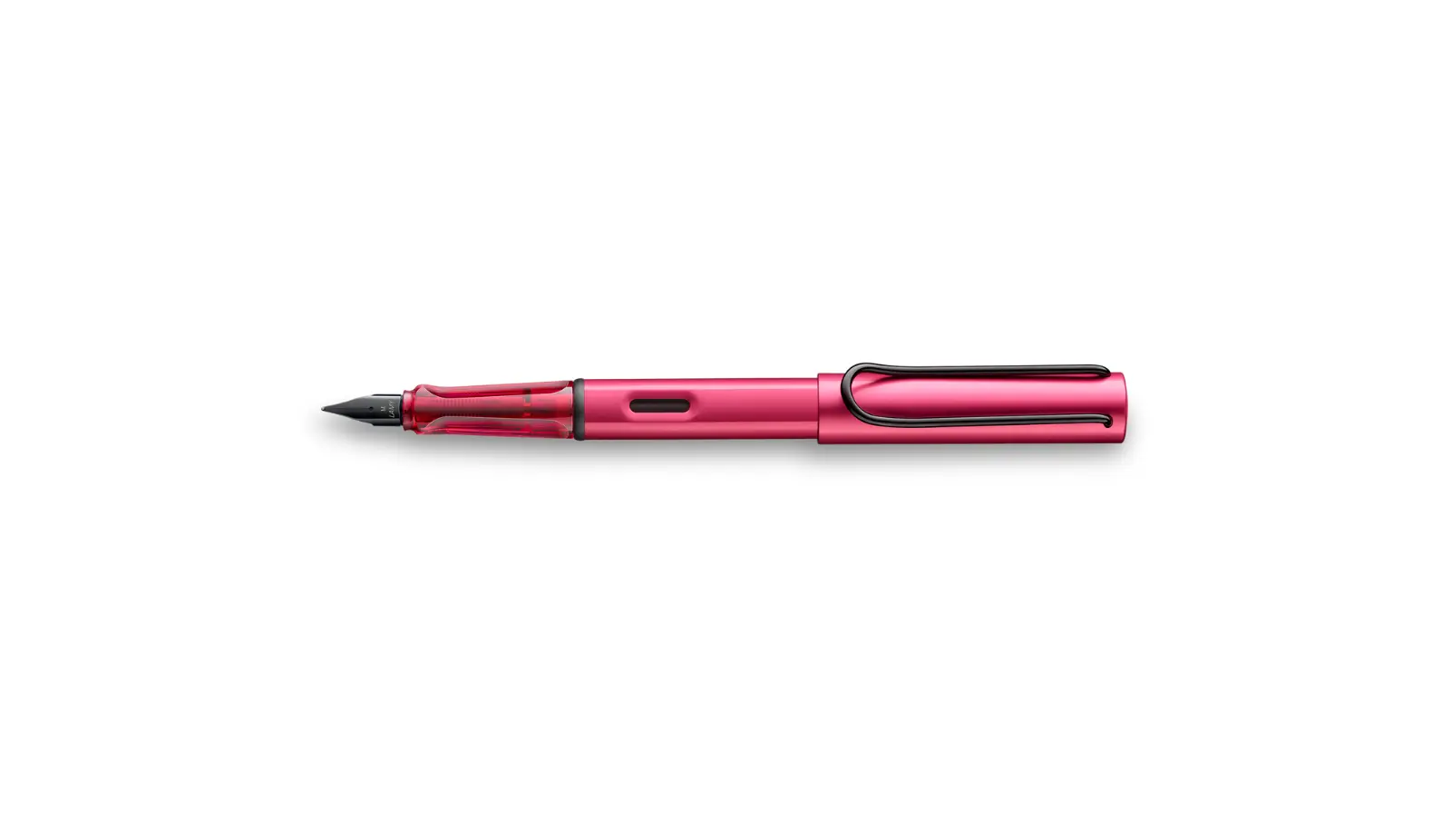 Penna stilografica Fiery interamente in alluminio di colore rosa. Clip e finiture di colore nero. Pennino Fine e Medio in acciaio nero. Caricamento solo a cartuccia, finestra che mostra la quantità di inchiostro rimasta nella cartuccia.
