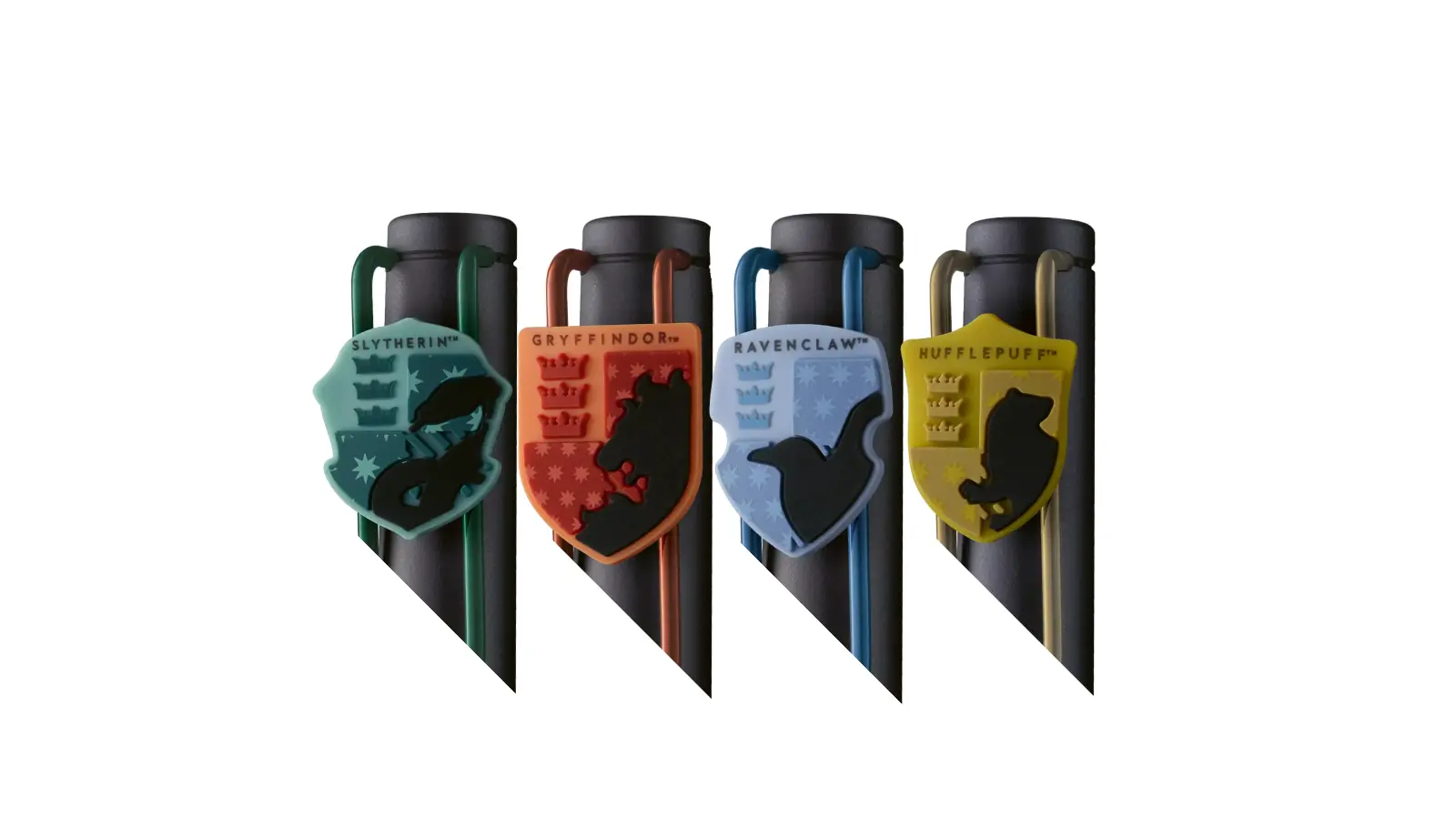 Penna stilografica che rappresentano le quattro case di Hogwarts: Grifondoro, Serpeverde, Corvonero e Tassorosso in plastica ABS nera e colori esclusivi della casa di Hogwarts con distintiva clip in metallo con finitura coordinata. Ogni penna presenta l’emblema della casa sul cappuccio. Pennino Medio in acciaio inossidabile. Caricamento a cartuccia e/o converter.