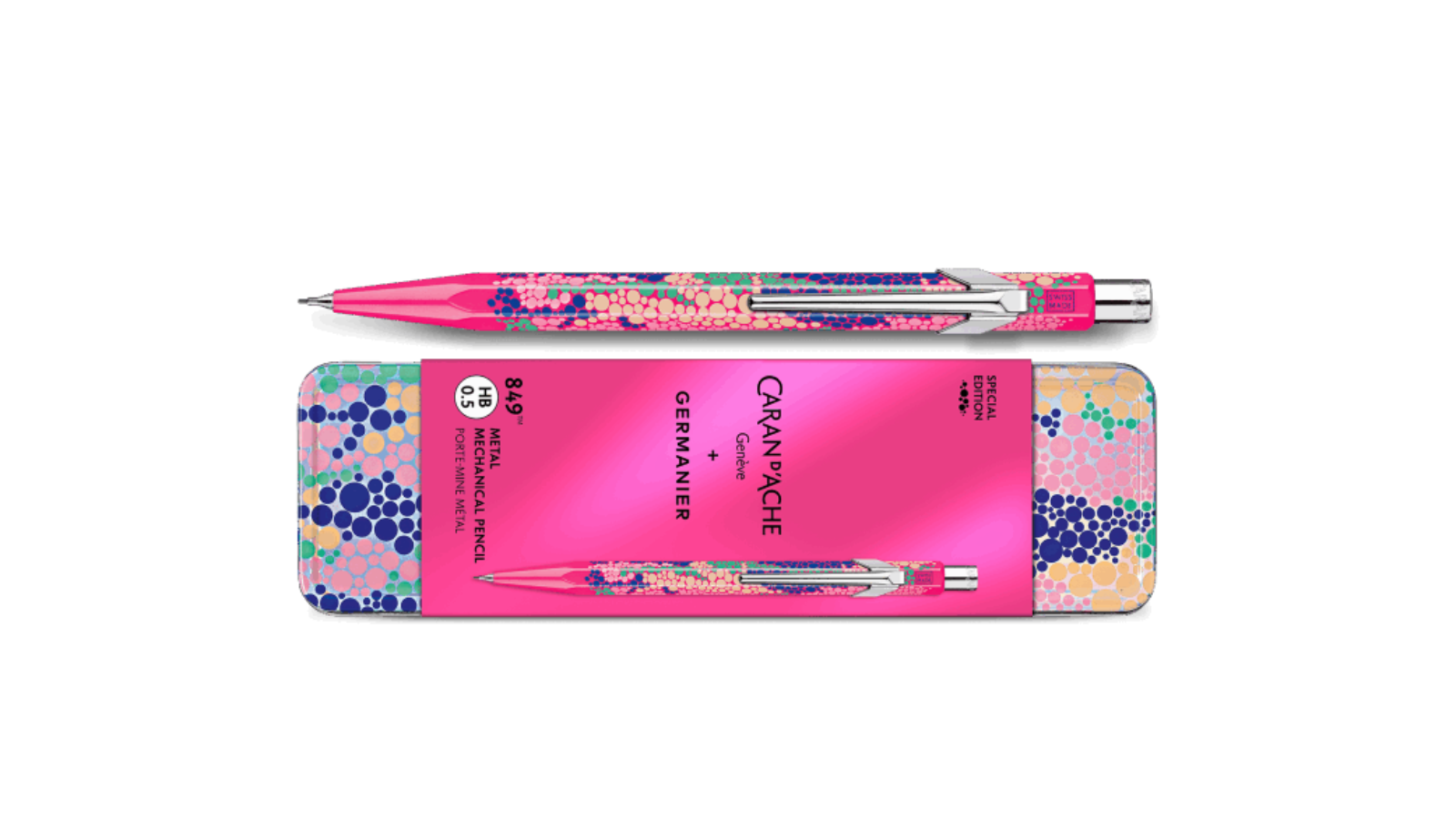 Portamina Caran d’Ache 849 Germanier Rosa è un’edizione speciale della collezione Les Fulgureuses, che cattura l’energia intrepida di Germanier attraverso strumenti di scrittura e di belle arti unici nel loro genere.